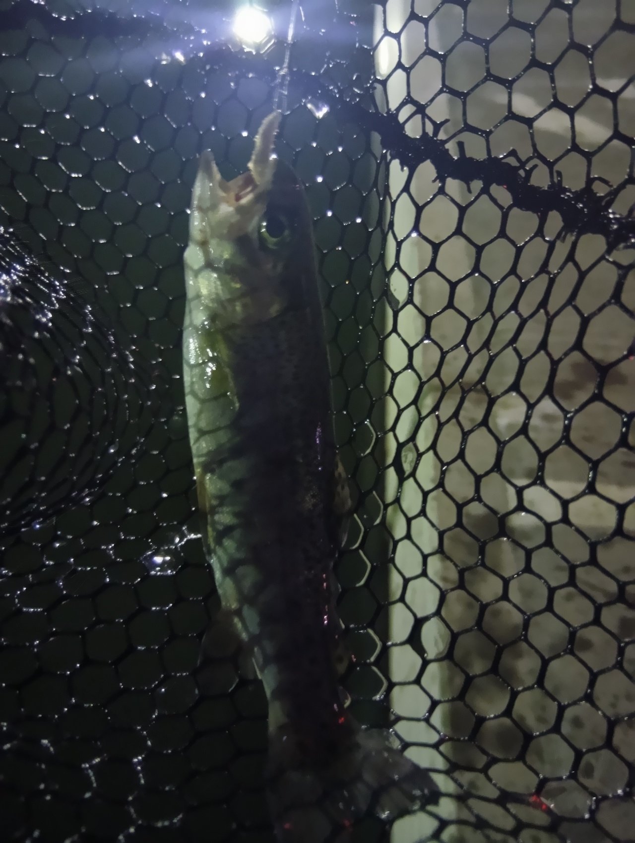 仕事終わりにTSURIBORI弁天閣さんへ遊びに行ってきました。到着が19時30分になってしまったので、釣行時間が1時間半の短時間勝負でした。しっかりライトアップされているので、暗い中でも魚が見え、反応を確認しながらルアーをローテーションしていきました。ボトムからリフトしてカーブフォールで食わせるパターンを見つけられ、連発する事ができて楽しめました。今回は大型のブランド鱒は釣れませんでしたが、ナイターで気軽に楽しめる釣り場なので、オススメです。
