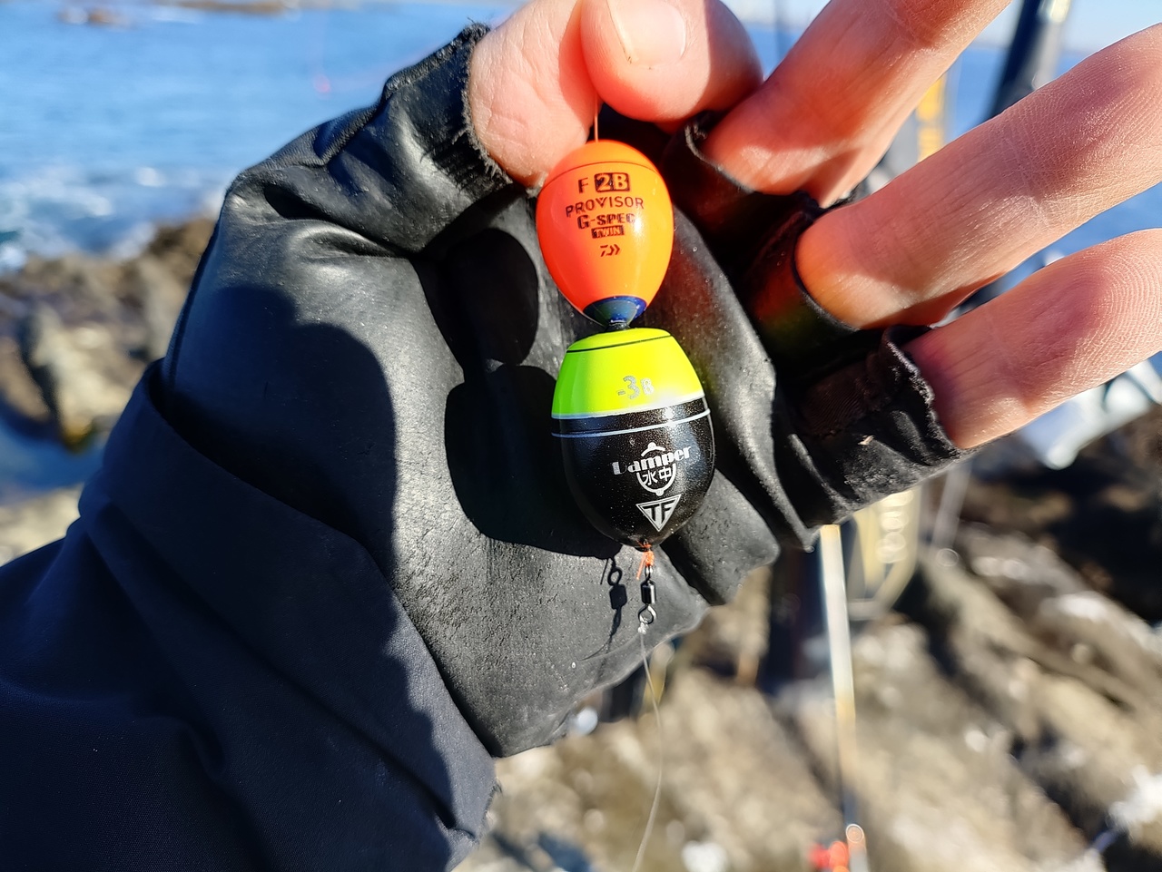 仕掛けは水中ウキ-Bの2段ウキ、大型に備えて道糸、ハリスともに2号を選択しました。