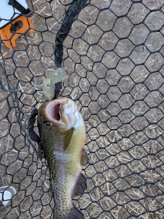 30~40gのジグヘッドワームでボトム付近をトレースすること数投!モゾモゾ…というバイトを取り、フルフッキング!水中のイヤイヤ首振りが伝わってくる!