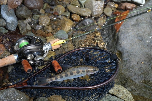 当日は寒く水量少ない渓だったためその水深と魚の活性に合わせたルアーを選択。