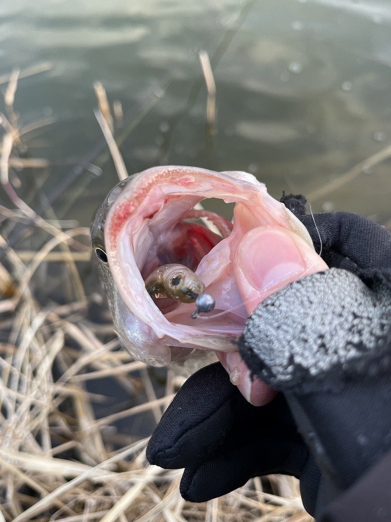 大型狙いなので足元から水深のあるポイントをチョイス。到着すると風強!気温は-1℃で凍てつく風が容赦なく吹き付けます。