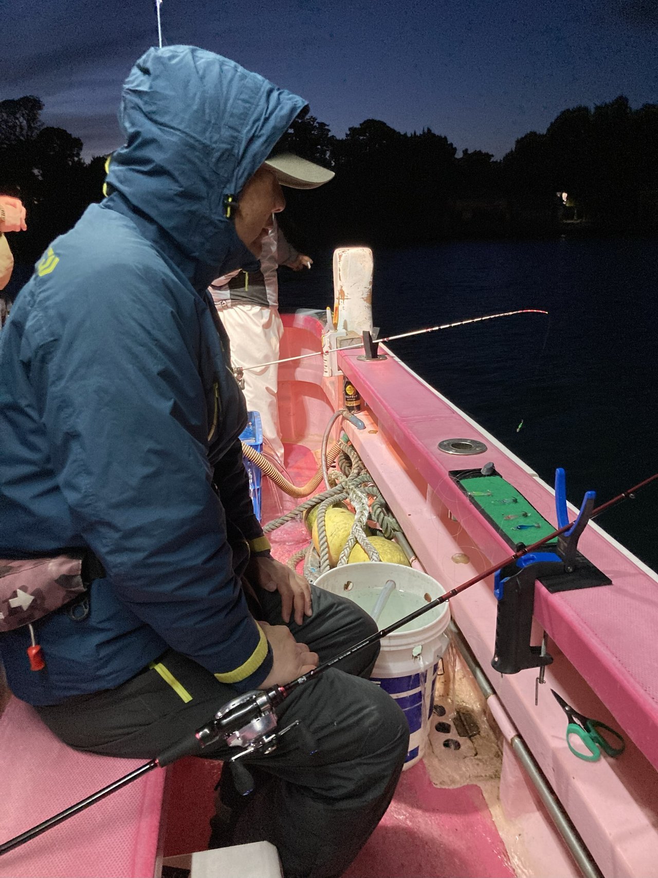 15時半頃にポイント到着、暗くなるまでは釣れないので相変わらずすることなくごはん食べたり偶然乗り合わせた友達と話しながら時間潰しです。