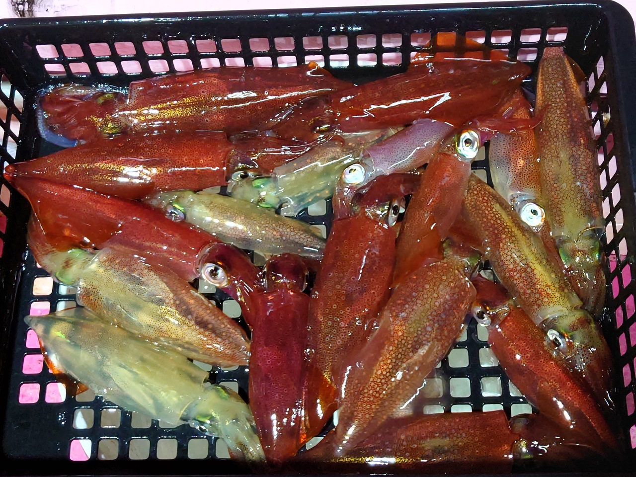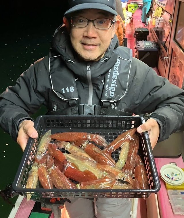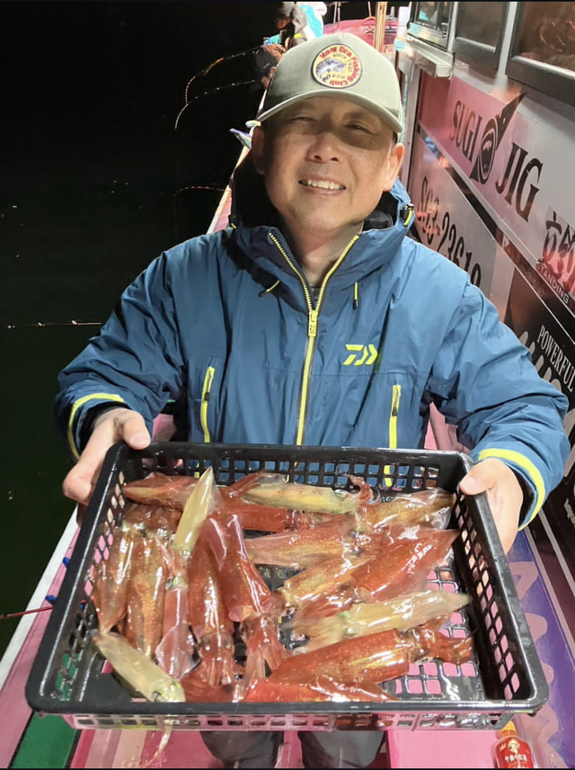 静浦港の幸松丸さんより早夜便の夜マルイカに行ってきました。良いポイントに入るため早めにポイントに入り、暗くなってから本格的に釣り開始。暗くなってすぐは活性が高くアタリ活発で、マルイカ釣りが苦手な私でもポツポツ釣果出せました。アタリが渋くなってからは、移動しながらの拾い釣りで、うまい人は一杯、二杯拾えるといった感じでした。夜なら昔使っていたスッテでも釣れるかもと試してみましたがまったく釣れず・・・。釣れるのは最近の裸のスッテばかりでした。自分はアタリが取れないのでから合わせ中心で釣っていましたが、それでもそこそこ釣れましたよ。沼津の夜のマルイカは活性がいい時はそんなに難しい釣りではないので、マルイカ苦手な方もチャレンジしてみてはいかがでしょうか。