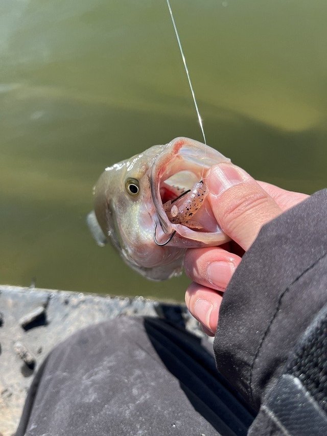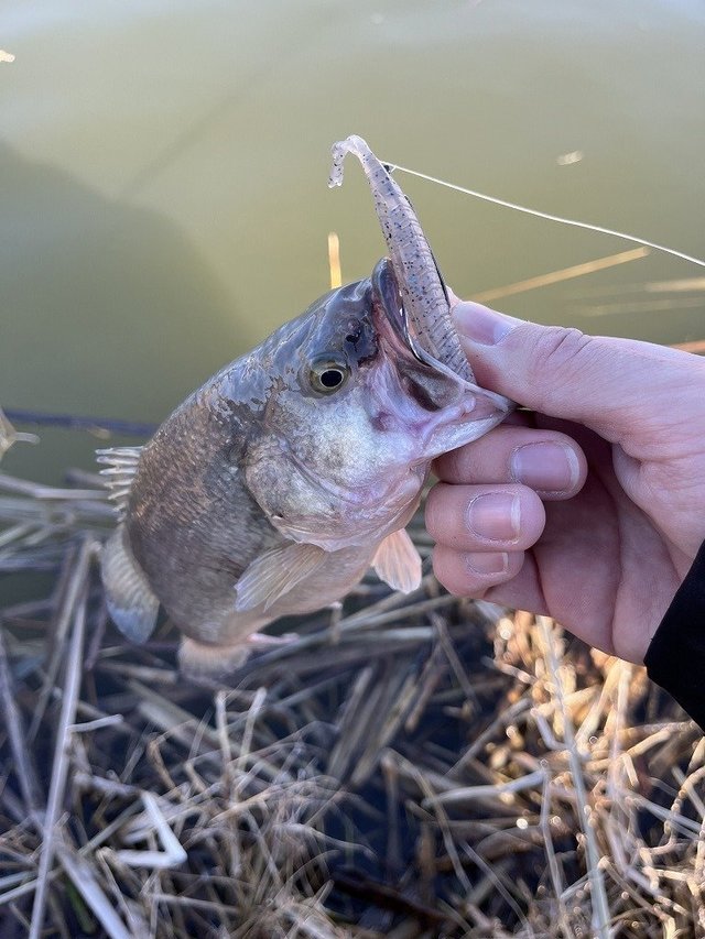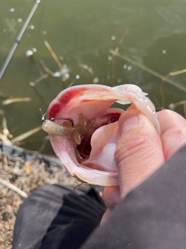 ライトキャロは前回と同じくジャッカルのシザーコーム、カバー撃ちは細身のバックスライドワームをいろいろ使って釣ることが出来ました。午後券での入場だったので、夕方のエサタイムでは魚系ワームを使ってミドストでも釣れて楽しむことができました。