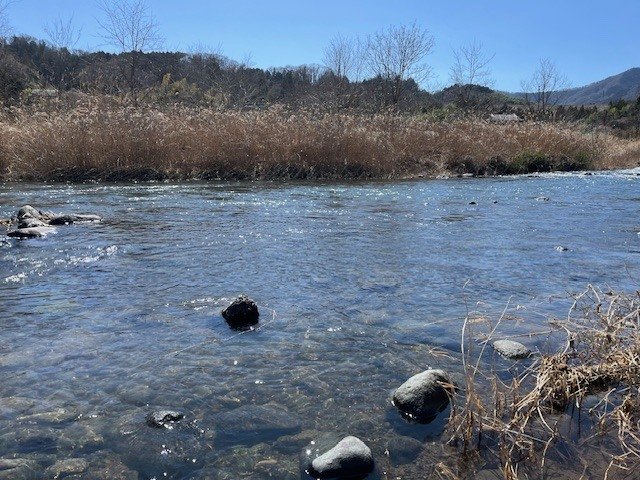 放流したヤマメは足元の枯れ草の中からルアーを追ってくることもありましたのでいきなり岸際に立つのはやめたほうが良さそうでした。