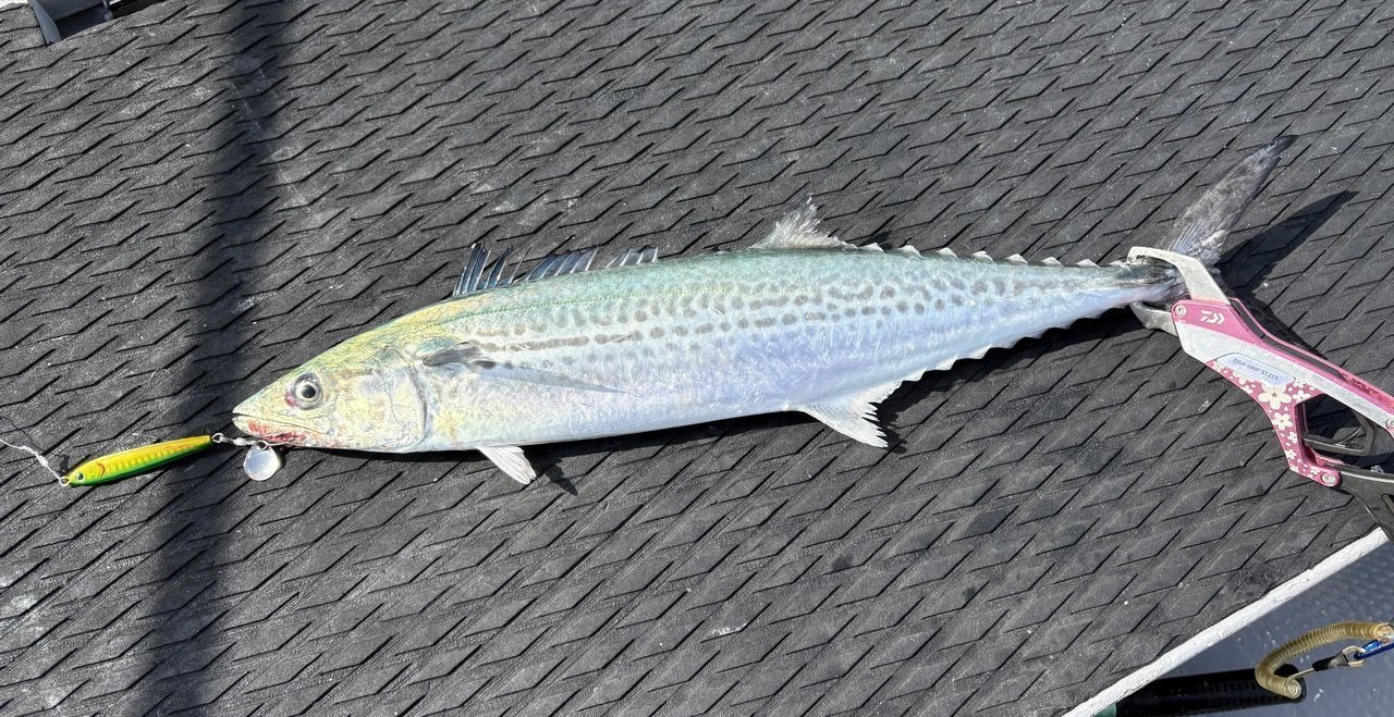急に爆発的な釣果を見せている東京湾サワラゲームへ、木更津MAVERICKさんから行ってきました!朝のうちは海況ひどく大荒れで、なかなか釣りどころじゃなく頑張りながらの釣りでしたが、次第に波が落ち着きをみせ、ようやく本腰スタート!お昼過ぎたころにお客様にファーストフィッシュ!その後、なかなか続かず苦戦しましたが、ようやく船中アタリ出始め、指示ダナを我慢して丁寧に探って自分も小さいですがいちおう顔は見れました(^^;)