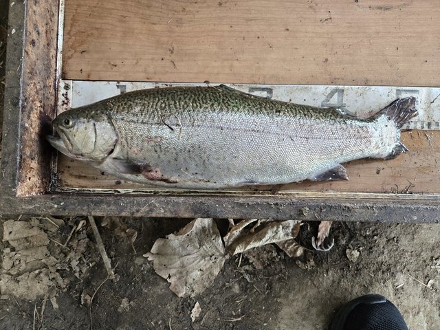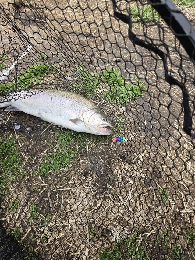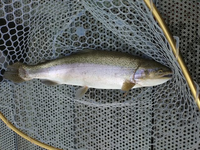 いつもご覧いただきありがとうございます。南柏店スタッフ田中です。今回は土浦にあるフィッシングエリアJに行ってきました。雲で陰りローライト気味の1日だったからか、トップウォータープラグの調子が良い1日でした。そんな中大物池でアルミン3.3gを投げていると気持ちの良いヒット50アップのニジマスが釣れてくれました。臭みも無くとても美味しい個体でした。