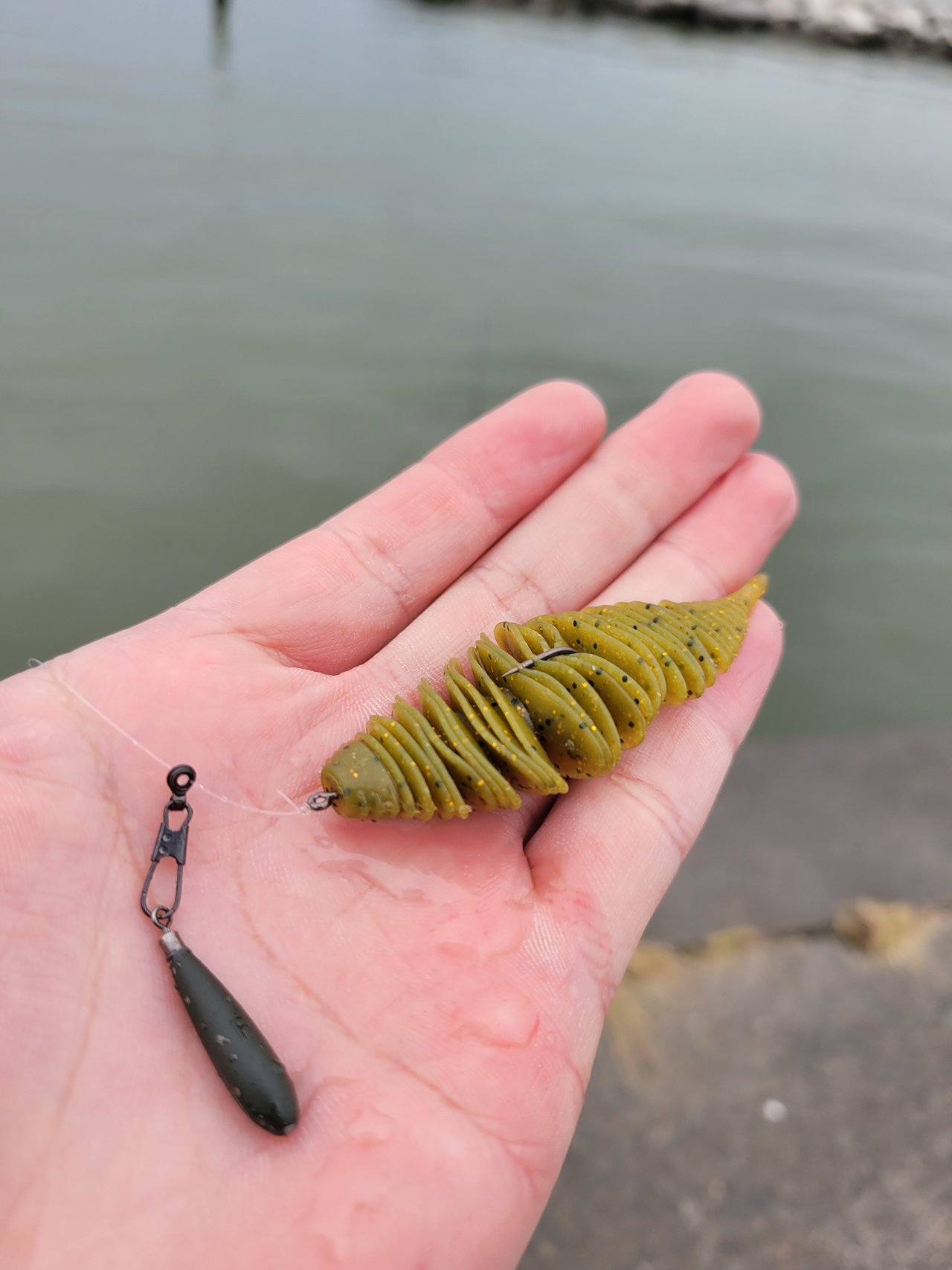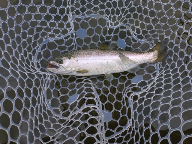 竿をルアーロッドに持ち替えて再チャレンジです。ルアーはお気に入りのチヌーク4.5g金。そして数投目で待望の2026年初ヒット&キャッチ。一安心したところで再度餌釣りに変更しますが、鮎と違って現場でも比較的簡単に仕掛けが作れるので助かります。放流ポイントに入りますがどうしても食わせることができません。またルアーマン、フライマンの方が入れ替わり立ち替わり入りますが釣れるのはルアーマンのスプーンやミノーだけでした。ということでまたまた竿を持ち替えてチヌークゲキアツ7g赤金を投げるとすんなり2匹目がヒット。リアクションが有効なのでしょうか?その後はミノーやスプーンにアタリや追いはあったものの食いが浅くヒットまでには至りませんでした。