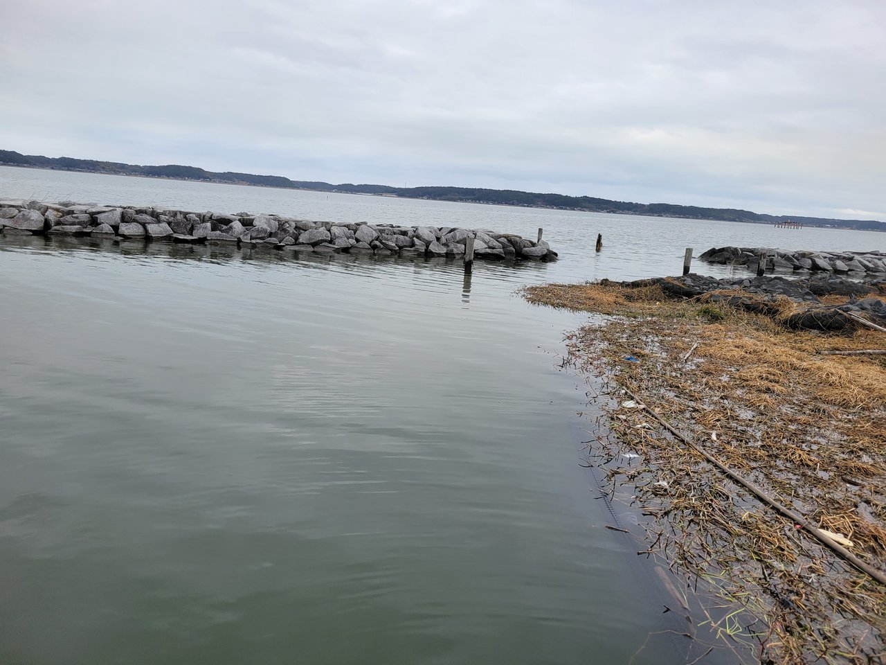 その後はひたすらベローズギル2.8の7gフリーリグで岸沿いを探っていきますがこれまた無・・・