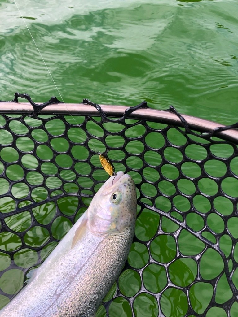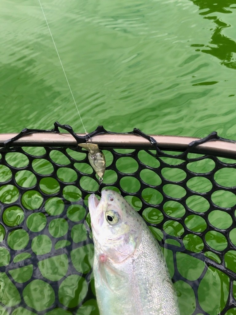 しかし、湧き水により水温が安定しているので高活性!クランクやスプーンのローテでポロポロと拾えましたが、その後は激シブ…鼻先でチェイスを維持し続けても見切り、ボトムも1/50位の確立でしか見てくれない…かなり厳しい状況でした(今回放流されている個体は12月分で入れ替わりしていないとのこと)