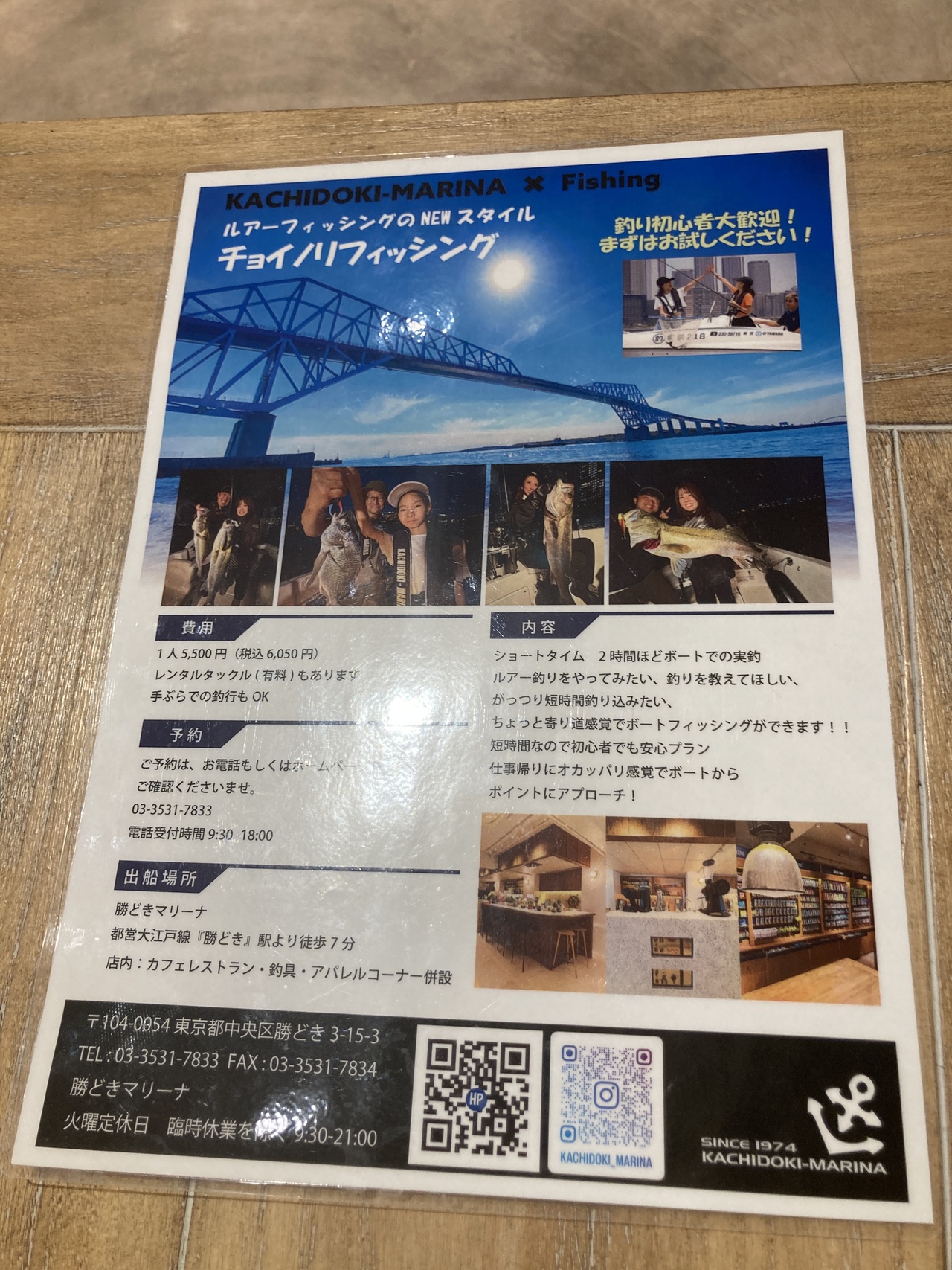 勝どきマリーナチョイノリフィッシングに行ってきました。大潮後の中潮2日目、完全なバチ抜け狙いでしたが、見えたバチは2匹。ほぼ無風でやりやすい状況でした。バチを意識しているシーバスが入ってきて満潮潮止まりのタイミングで1匹目。下げが効き始めたタイミングで1匹。ランカーサイズ。イナっこがたまに流れてくるので、フローティングミノーでブレイクを流してみても、不発でした。南風が吹いてきたので、終了しました。