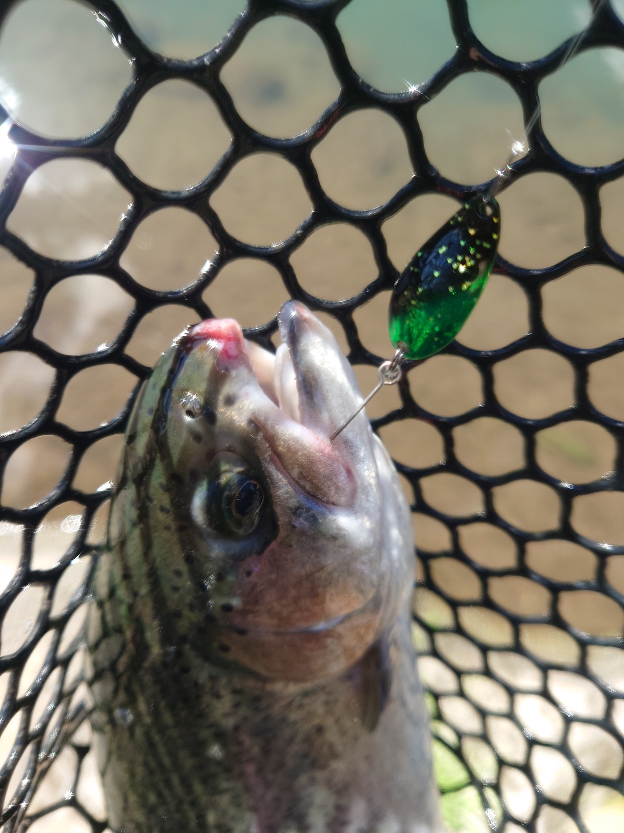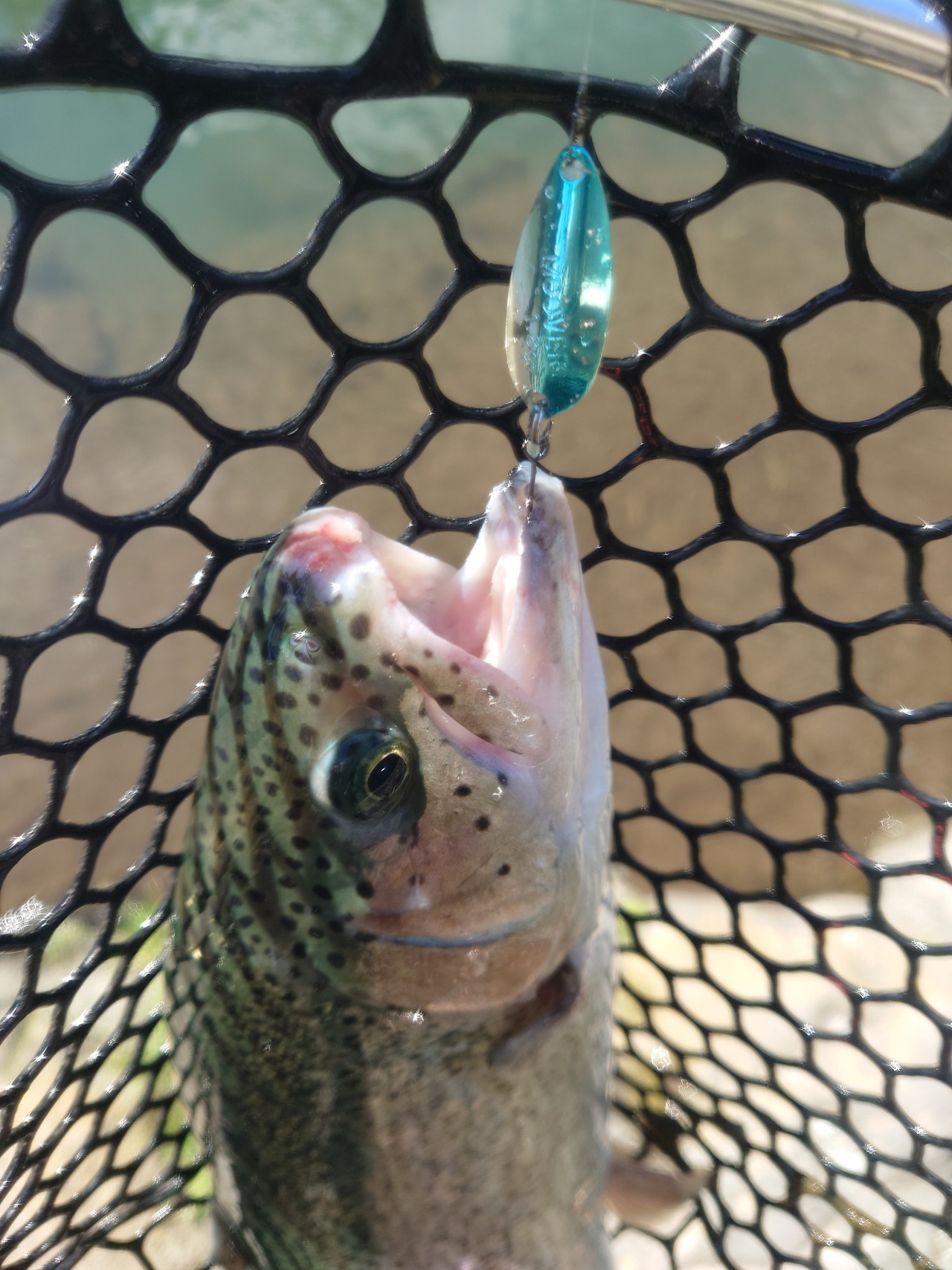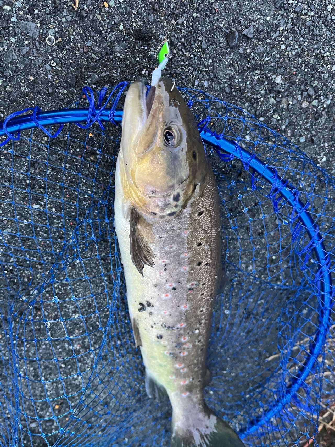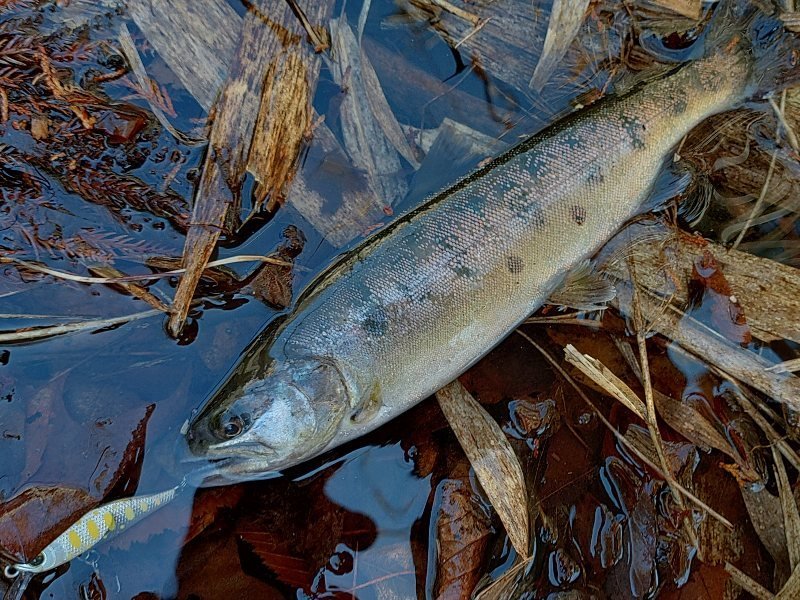 警戒心が高くなかなか顔を出しませんでしたが、いろいろなミノーとスプーンをローテーションしてアレキサンドラでキャッチできました!