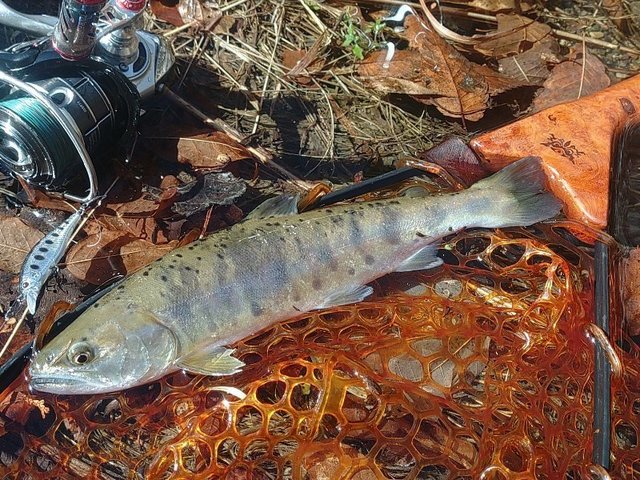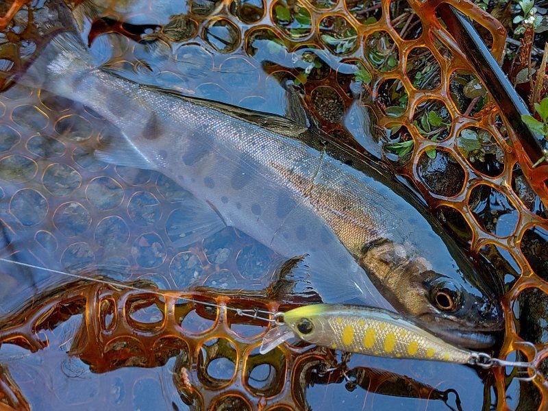 更に釣り上がって放流地点付近。シルバークリークミノーで2匹キャッチ!