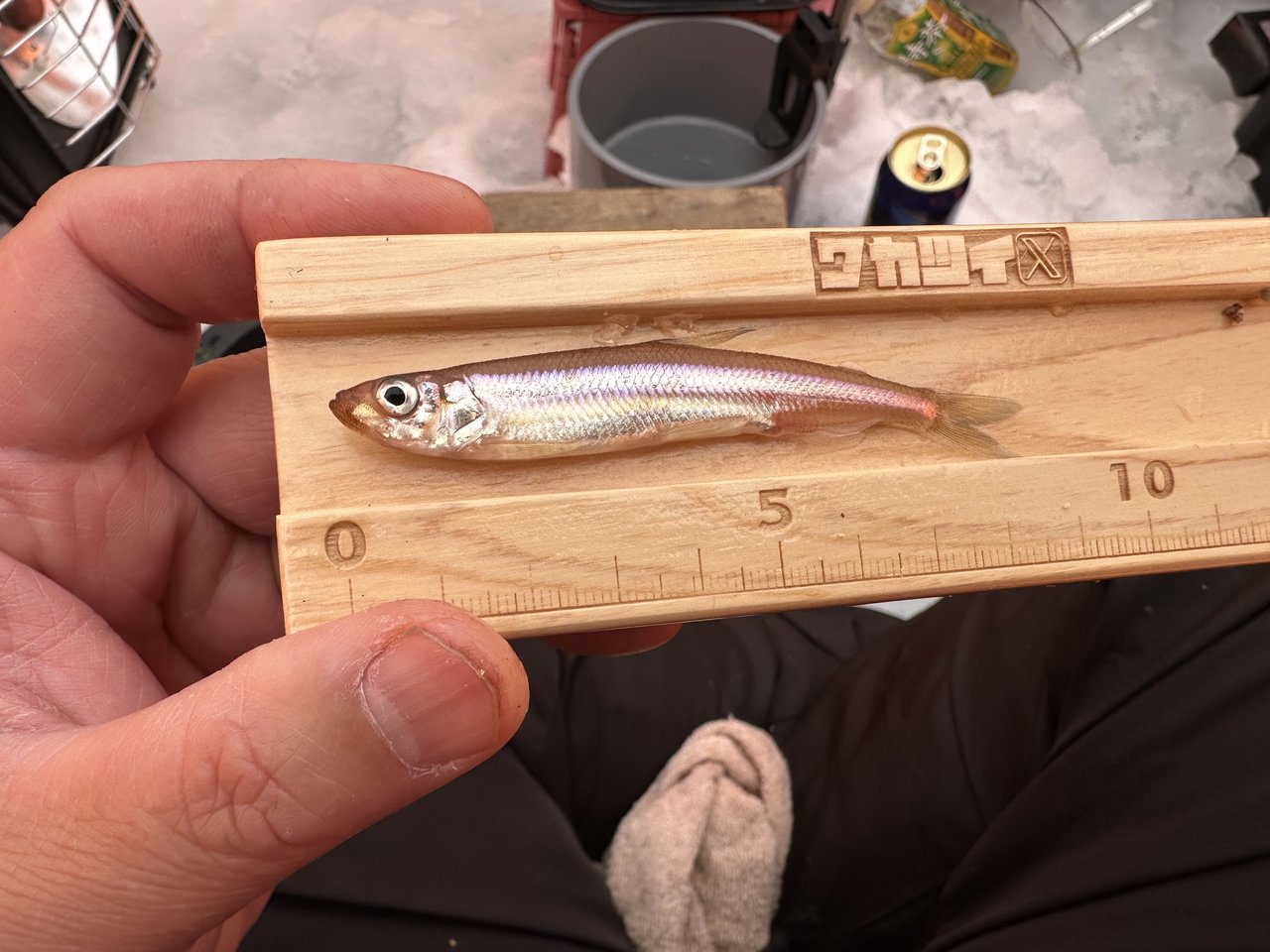 普段、底釣りがメインなので久々の中層の釣りです。でも、これはこれでオモシロイ!。底の反応と違って中層は反応が薄いですが、こまめなエサの交換とリアクションの誘いで何とか喰わせました。結果は77匹。たいして釣れませんでしたが、氷上の釣りが出来ただけで大満足です。