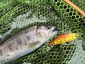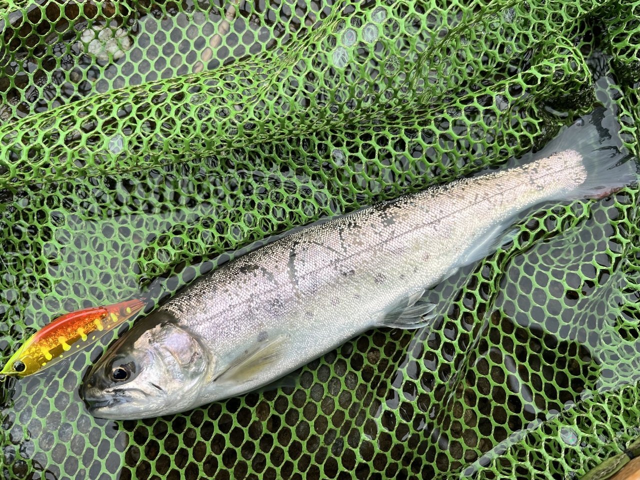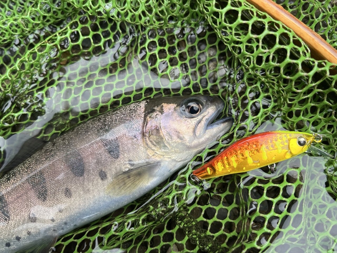 レーザーインパクトのギラギラ乱反射とお腹のアルミ箔の高アピールがヤマメに好相性でした。