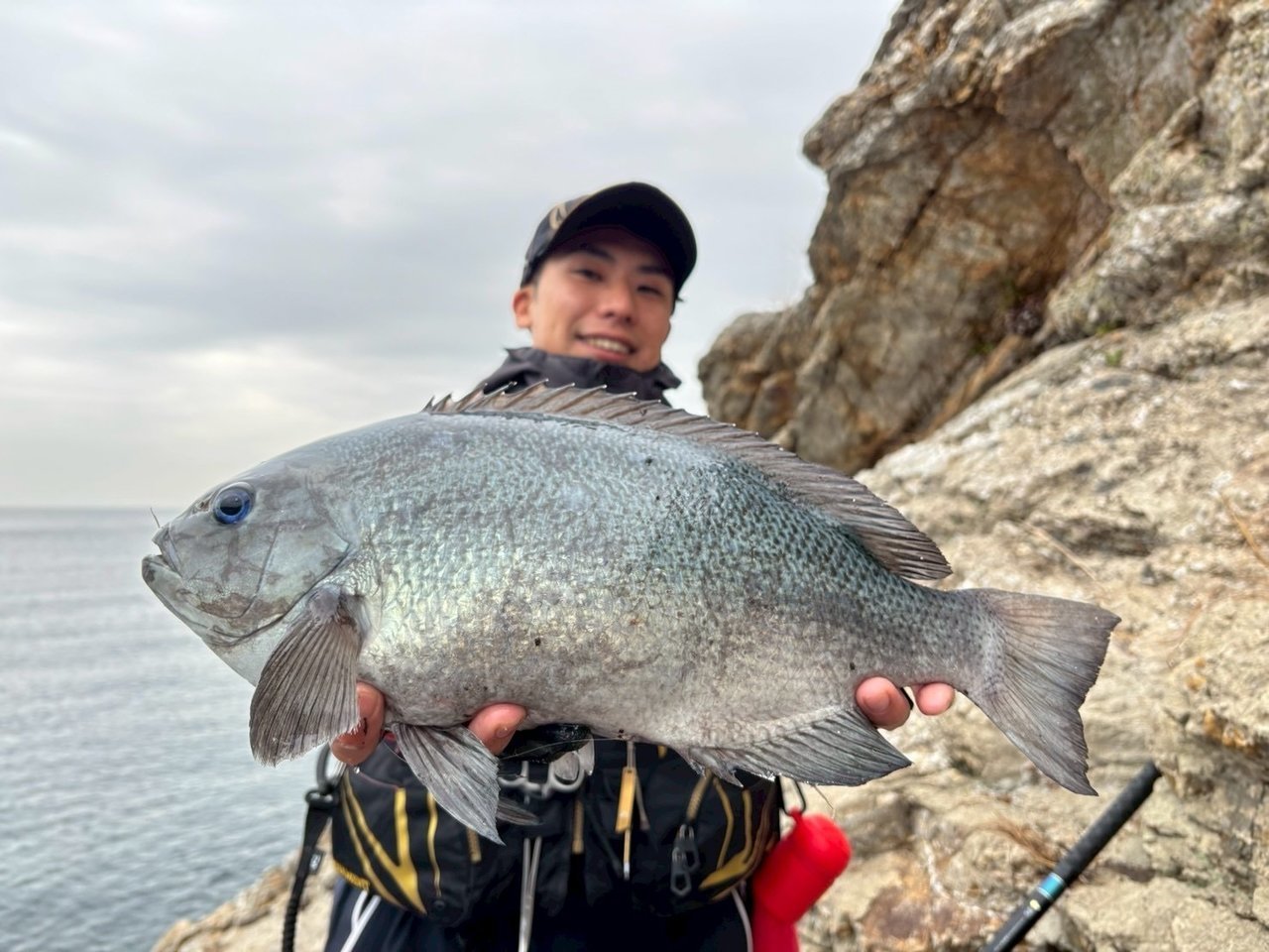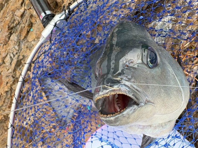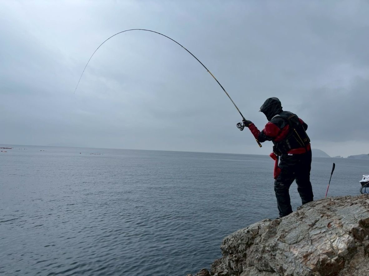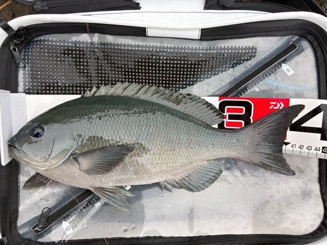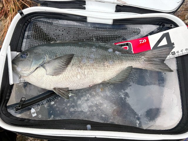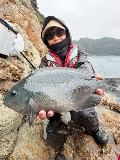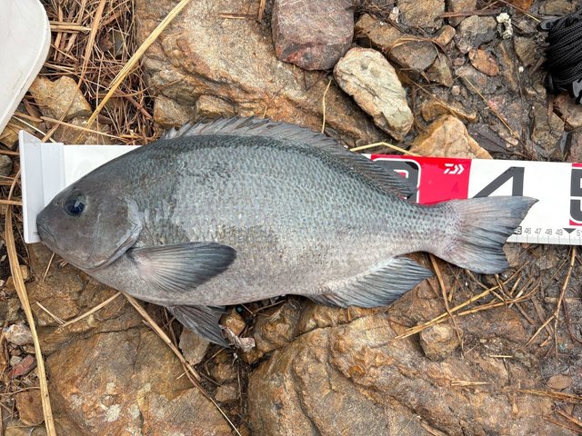 こんにちは!スタッフ佐久間です!今回は大分県は津久見エリア、IGマリンさんにお世話になり、終盤の寒グレ釣りに行ってきました!とりあえずタナを2ヒロから。足元にはエサ取りが見えていたので竿3本沖からスタート。本命の潮が効いていたので手返しよく探ると、、いきなり47cm!パンパンのメジナが浮上!外掛かりの薄皮1枚でしたが、トーナメントの曲がりとタメで慎重にいなしてGET出来ました!