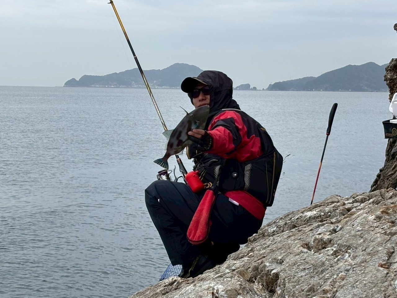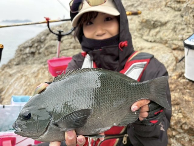 暖かくなってきたからなのか、足元にはフグやカワハギなどエサ取りが元気よくわちゃわちゃ。全遊動でウキは0号を使用。潮も風もそこそこで釣りやすい状況のはずですが、なかなか仕掛けがなじまない…。同行したスタッフ佐久間はテンポよく良型を釣っているのに、私には掛かってもフグばかり(;O;)見兼ねた佐久間に半遊動で仕掛けを組み直してもらい、針もエサも小さくし、言われた通りに仕掛けを流すとすぐに本命グレが釣れました(;・∀・)?その後は、ちゃんと仕掛けが馴染めばグレが釣れ、2枚追加。