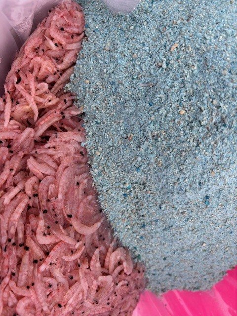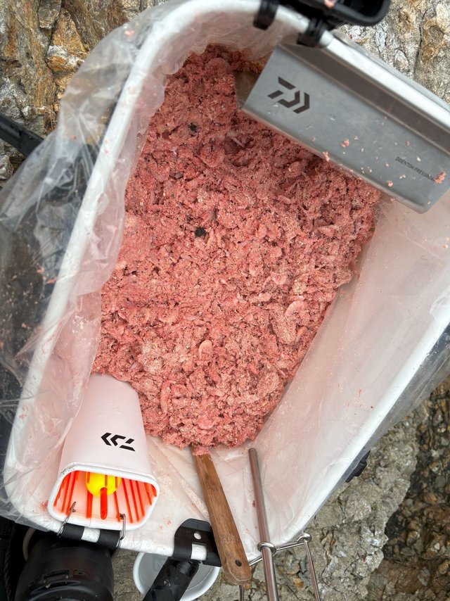 オキアミ生3キロ、パン粉2キロ