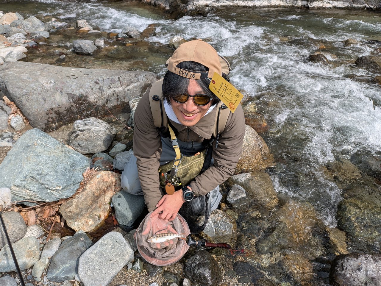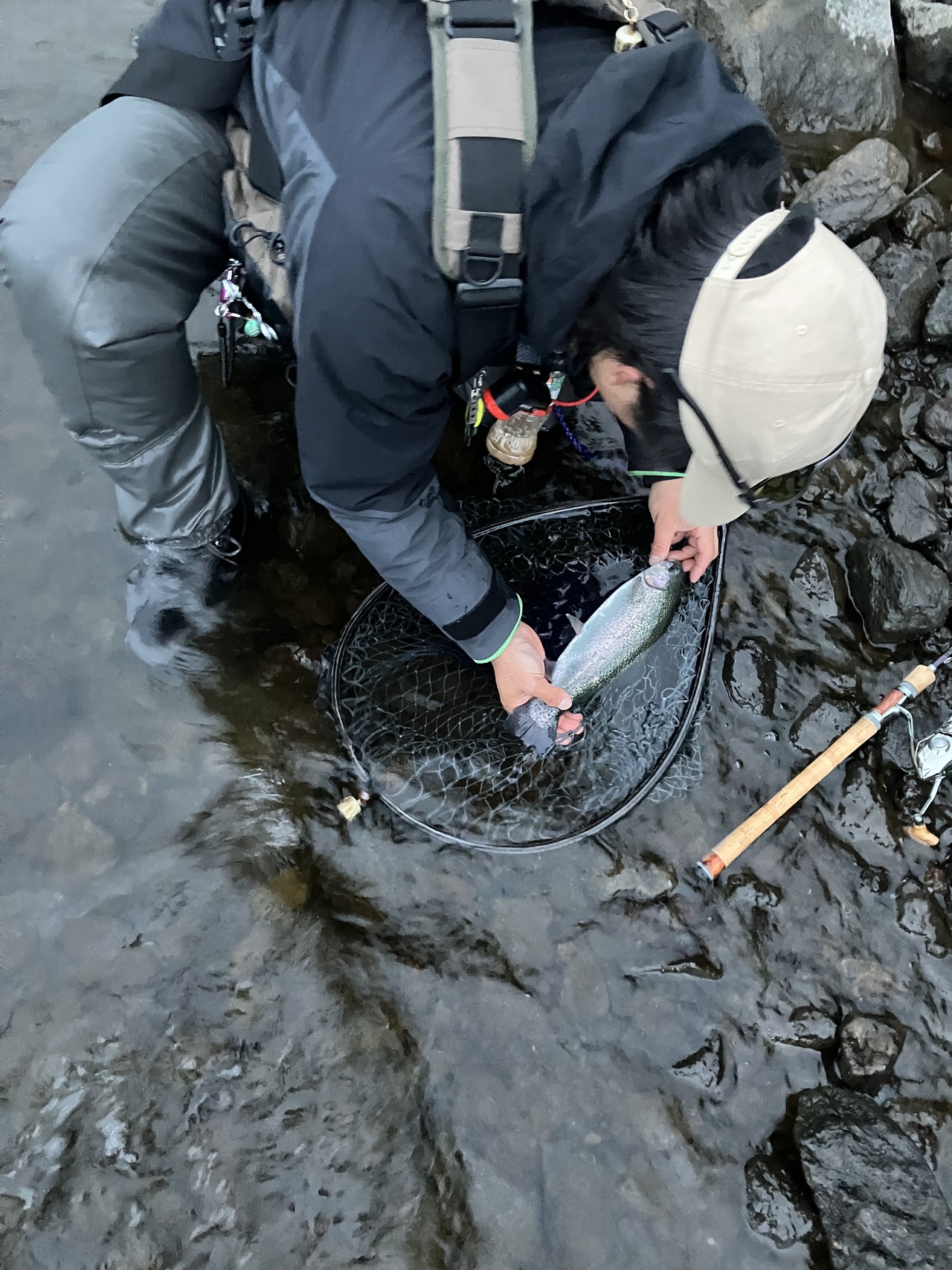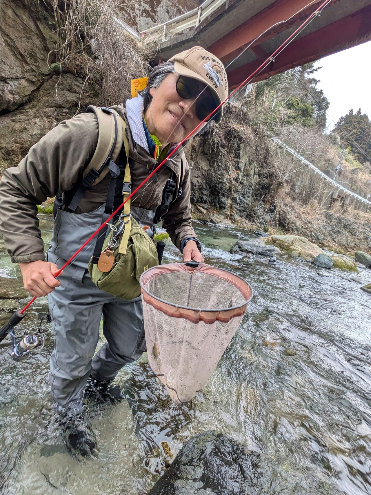 水量は落ち着いており、解禁直後らしい雰囲気。水はまだ冷たいものの、魚の反応は上々。