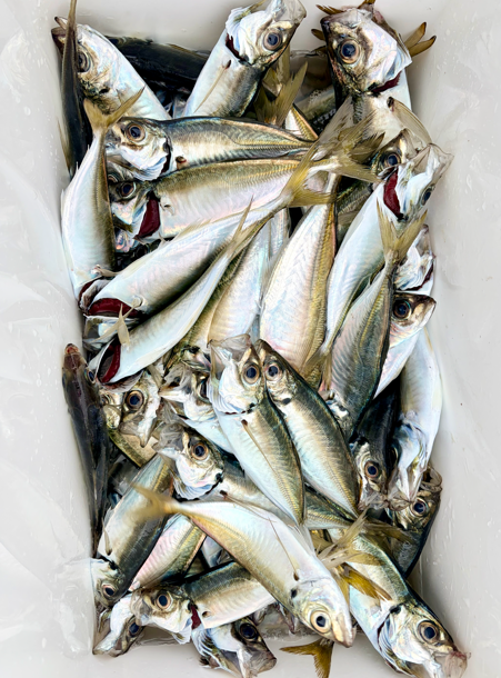 開始早々から入れ食いで仕掛けを落とすとすぐに当たりが!サイズは15センチ~25センチ前後のアジが多かったです。最終的には66匹のアジを釣ることができました。
