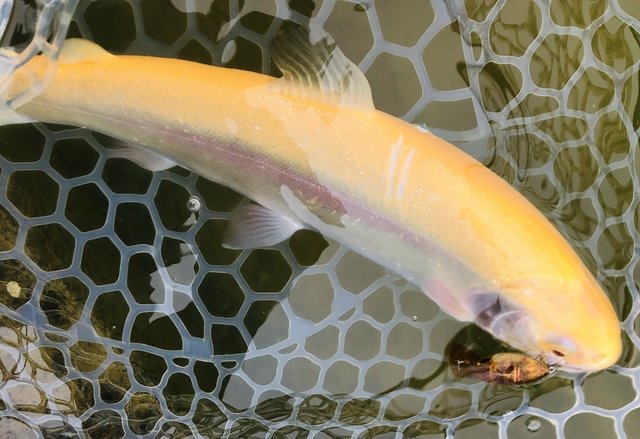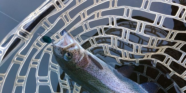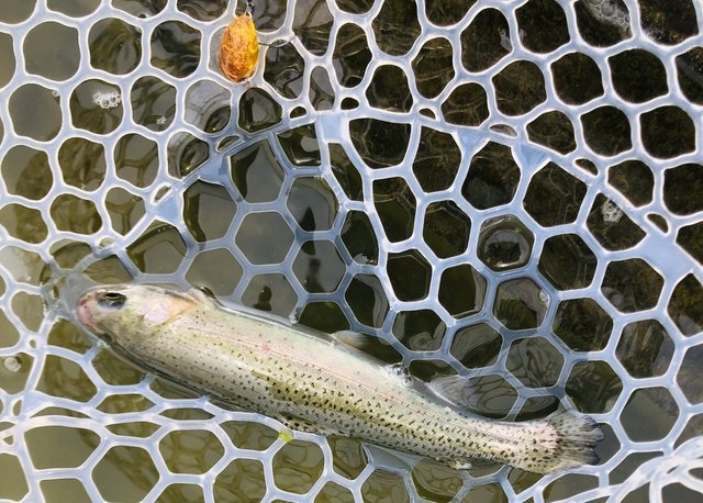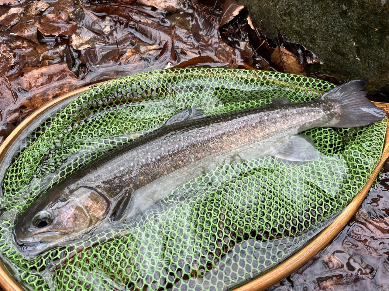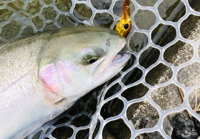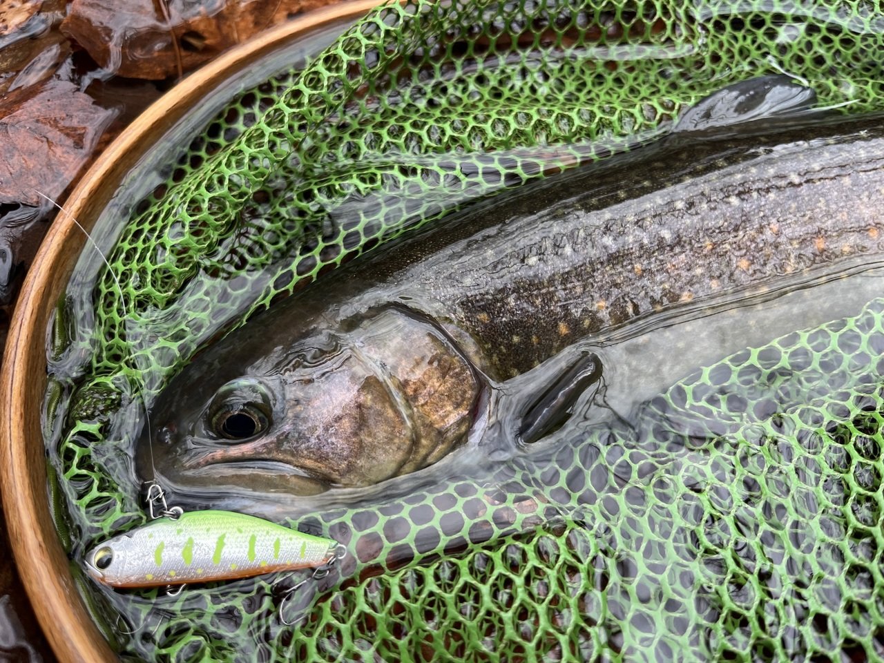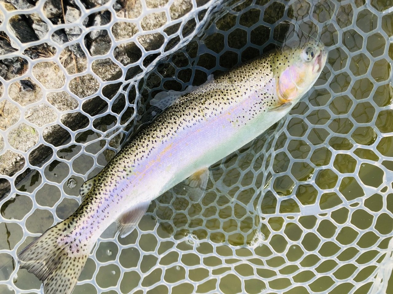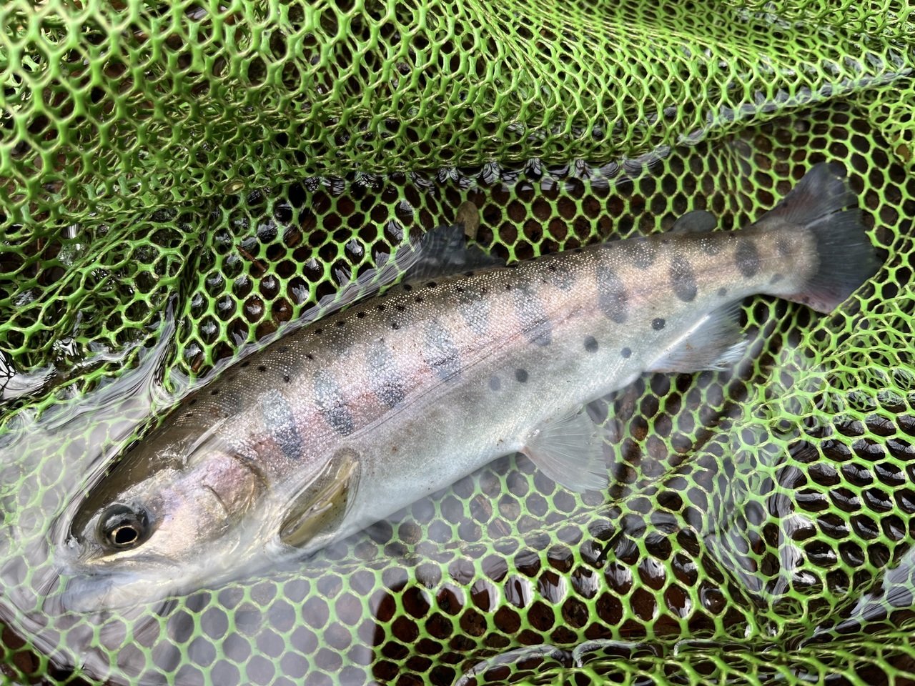 大型のニジマスを始め、良型のイワナ、ヤマメも多く混じり反応多く楽しい釣りでした。