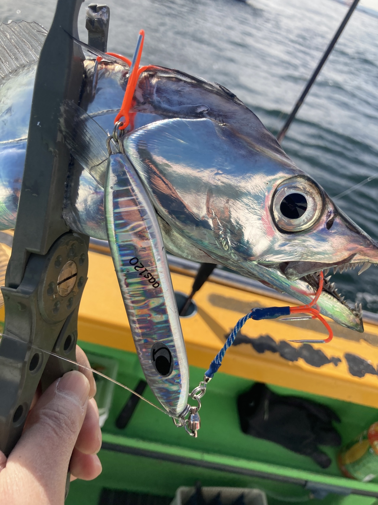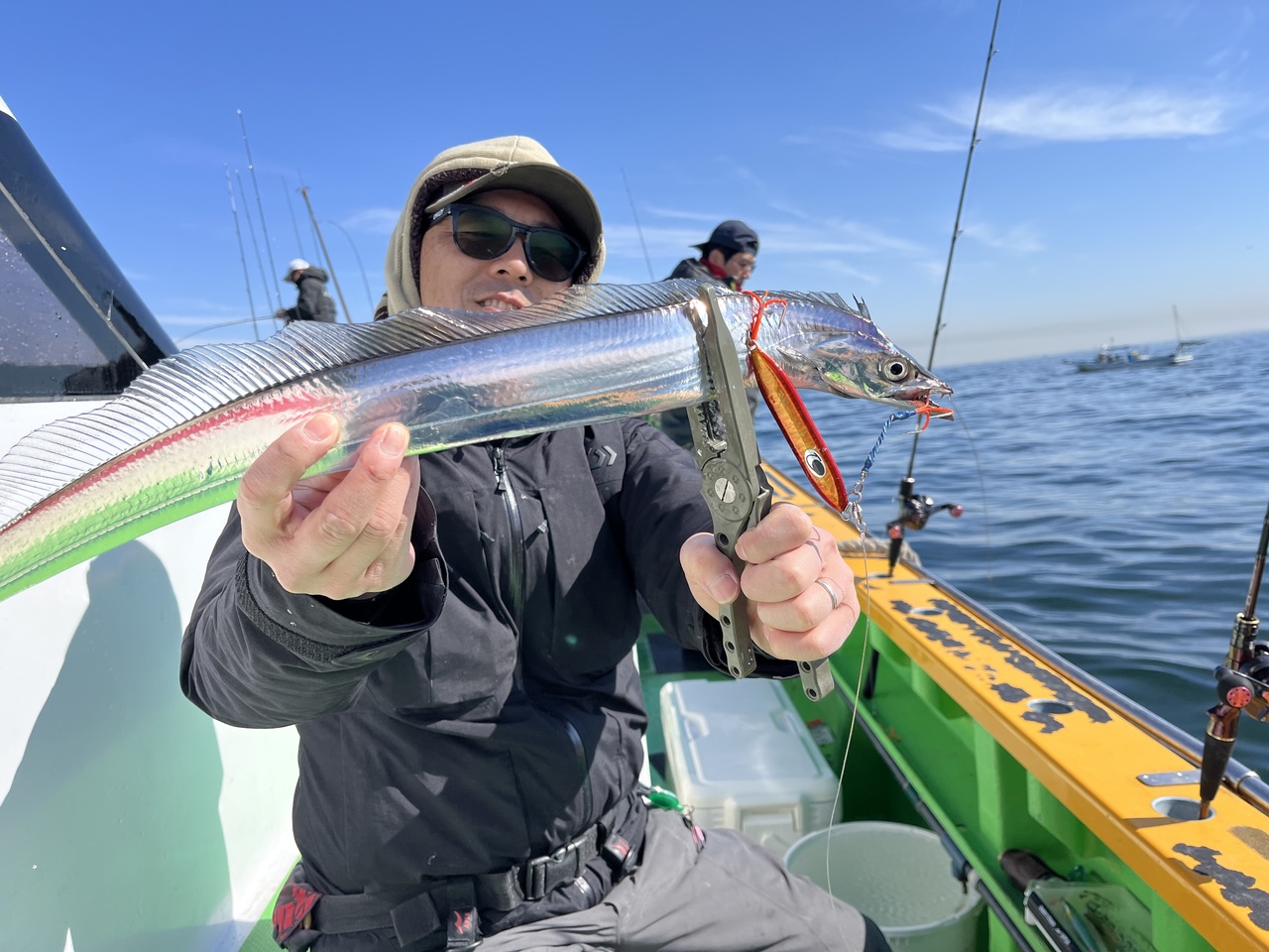 数年ぶりのタチウオジギングで渡辺釣船店へ行ってきました。湾奥へ向かうと思ってたら横浜沖に良い群れを見つけてスタート。周りはバンバン釣れているなか、ブランクがあり1匹目に手こずる。タングステンでボチボチ釣ったあと、鉛ジグでも丁寧に誘って数を伸ばす。シャクリ方、ジグの泳ぎ方、リールのハイギア、ローギアの誘い方、いろいろ確認ができてよかった。ポイントは貸切だったのにあっという間に船団になるのは東京湾ならでは。潮止まり以外は釣れていたので楽しめました。