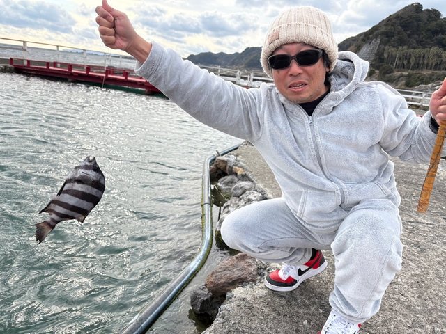 小気味いい引きで上がってきたのはメジナ。その後もカワハギやカサゴがポツポツとヒット。