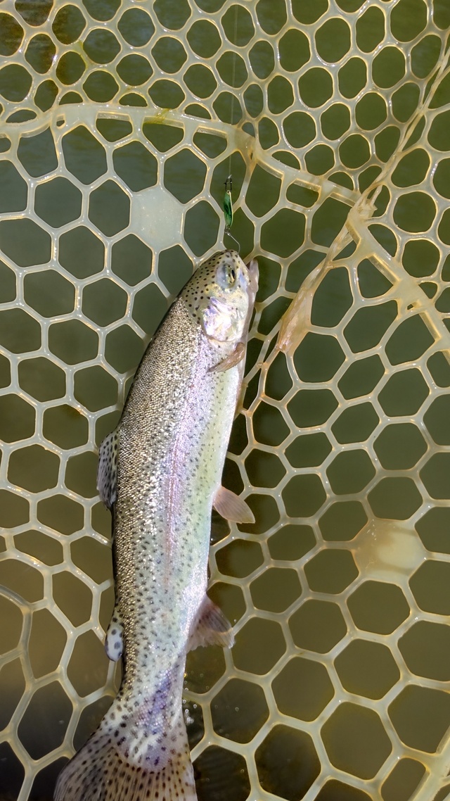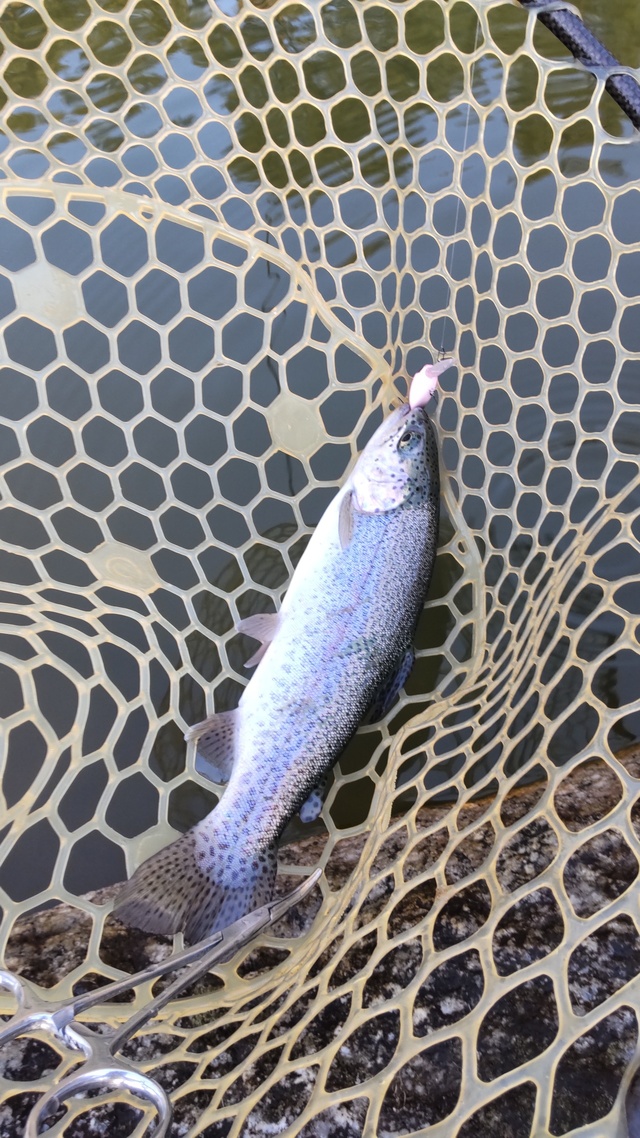 スタートは、スプーンでやりましたが、レンジを刻みながらサーチしましたがショートバイトでバラシ連発その後プラグにシフトしてスローに誘い無事にファーストキャッチその後このパターンでポツポツ釣ることが出来ました。放流もありいい感じでポツポツ釣りのんびり釣ることが出来2時半ぐらいに早上がりしました。