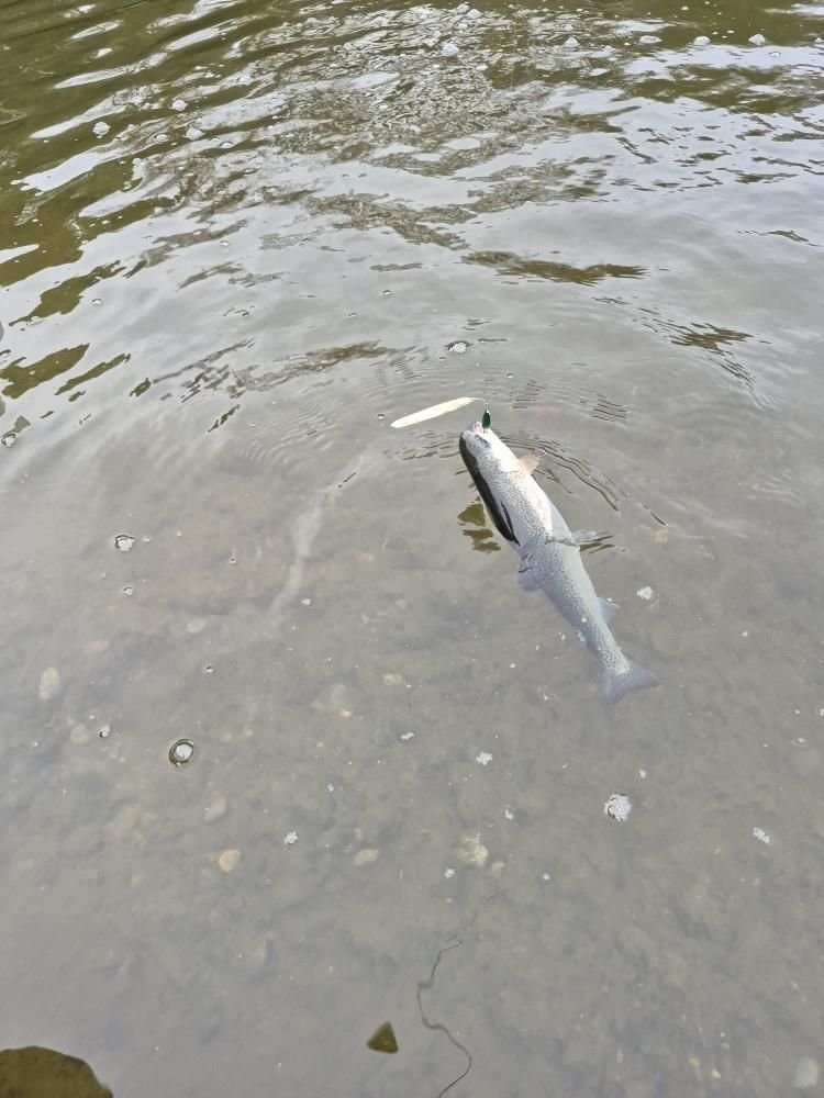 釣り場についてからスプーンのカラーと重さ、レンジを変えてみると水中からの反応がありほとんどがポトム付近でのバイト!!!