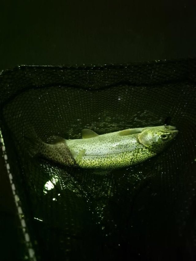 さすが重量級モンスター鱒のスーモン、すぐには上がらなかったものの鱒レンジャーの粘り強さで寄せて遂にネットイン!