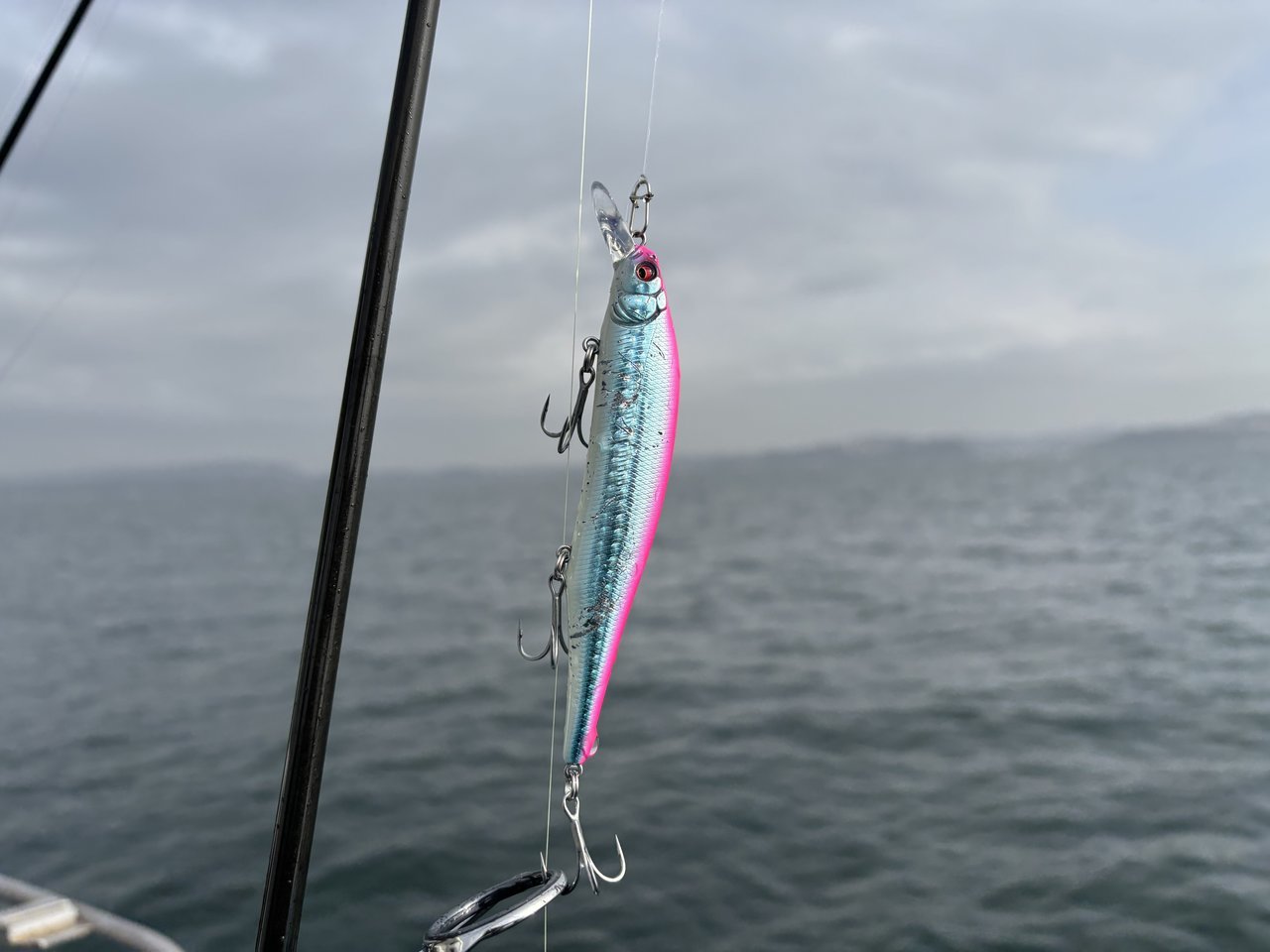 同船者がミドストでキャッチしていたので、スーパーフィッシュローラー5インチミドストにチェンジするとすぐにヒット!