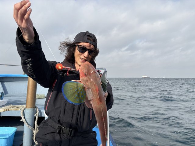 巻き速度を変えたり、ネクタイを変えたり、ヘッドを変えたりしながら反応を見ますが途中までは無の時間が続きます...後半「ガガガッ!!」と引き込まれるようなアタリが出るも乗らず、成田さんやお客様はゲストのホウボウやサメなどが掛かり魚とご対面できている様子。私もせめて何か掛けたいと粘りましたがその後もアタリのみで魚は掛ける事すら叶わず、タイラバ初挑戦はノーフィッシュとなりました。