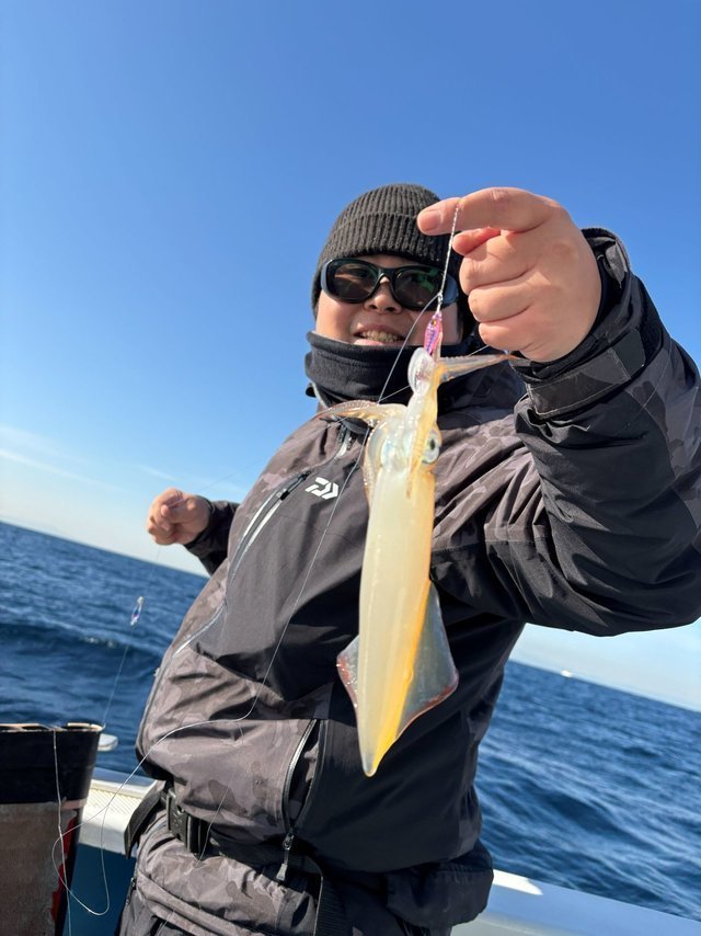 こんにちは青戸店オオサカです(`ー´)ノ青戸店スタッフでマルイカ釣りに行ってまいりました!私は人生初の釣り(船釣りをそもそもあまり行っていない)でした(゚Д゚)周りは釣れている中、私はアタリはわかるが掛けて以降の所作がわからなく、のってはいるが疑心暗鬼になってまたタタキにいってしまう(>_