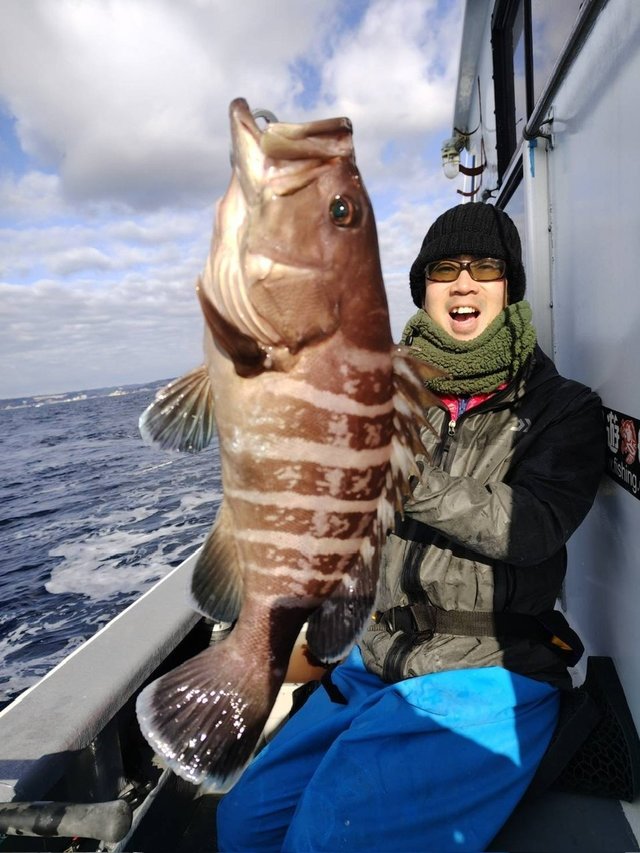 船上は一気に大盛り上がり。上がってきた魚体は圧巻の迫力で、まさに勝浦マハタのポテンシャルを感じる1本でした。