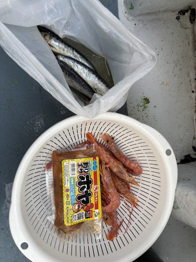 少ししてモニュモニュしたアタリがありましたが食い込まず、イワシだけ取られてました
