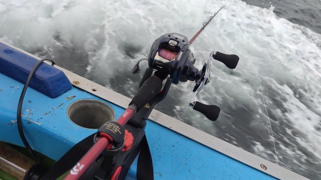 その後、アタリが遠退き一気にポイント移動。30分ほど北上します。水深は20mほどで底狙い。