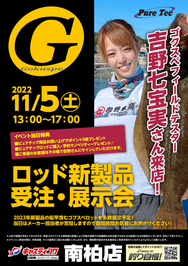 HOME > イベント予定 > 【南柏店】ピュアテック Gokuspe(ゴクスペ)ロッド新製品 受注・展示会