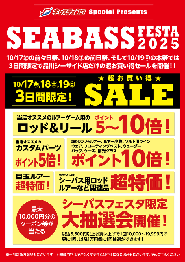 HOME > イベント予定 > ★10/17 情報更新★【品川シーサイド店】今年も開催!シーバスフェスタ2025