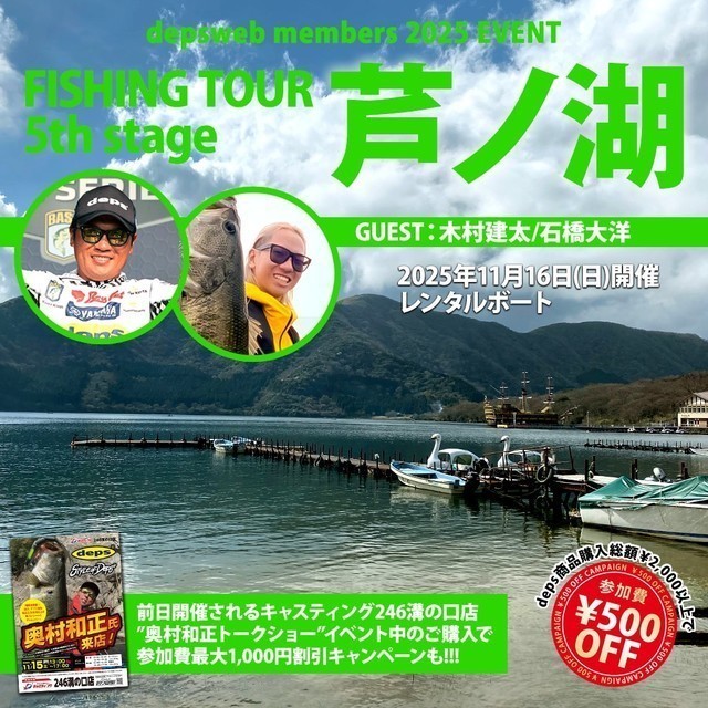 【特別特典】11/16(日)開催『フィッシングツアー芦ノ湖』エントリー費最大¥1,000オフ!!