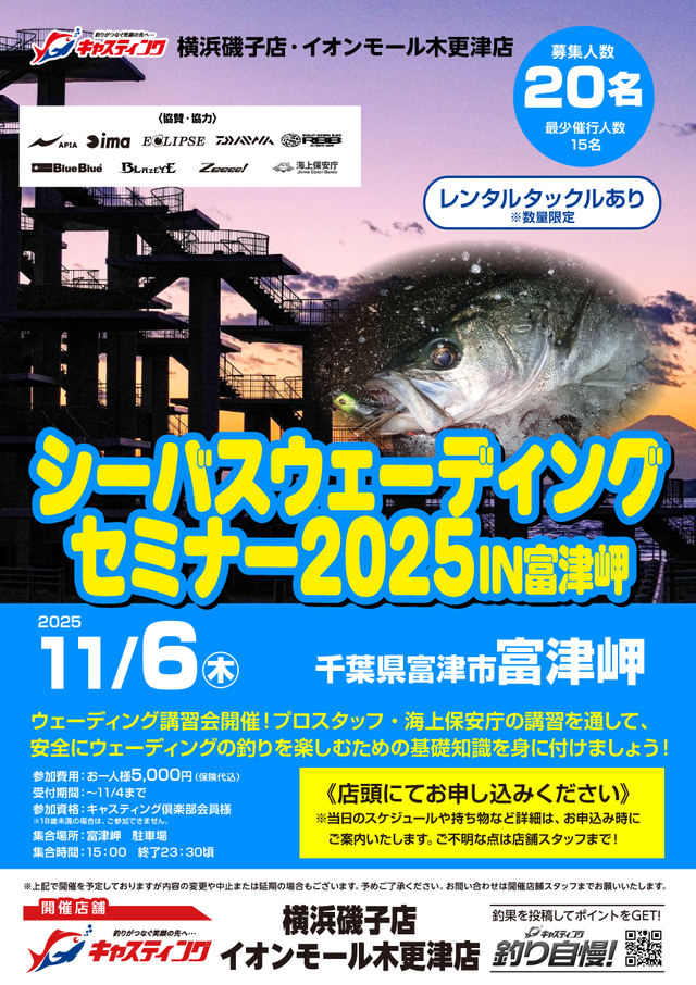 HOME > イベント予定 > 【横浜磯子店・イオンモール木更津店】シーバスウェーディング セミナー2025in富津岬