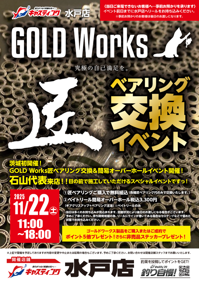 HOME > イベント予定 > 【水戸店】ゴールドワークス匠ベアリング交換イベント