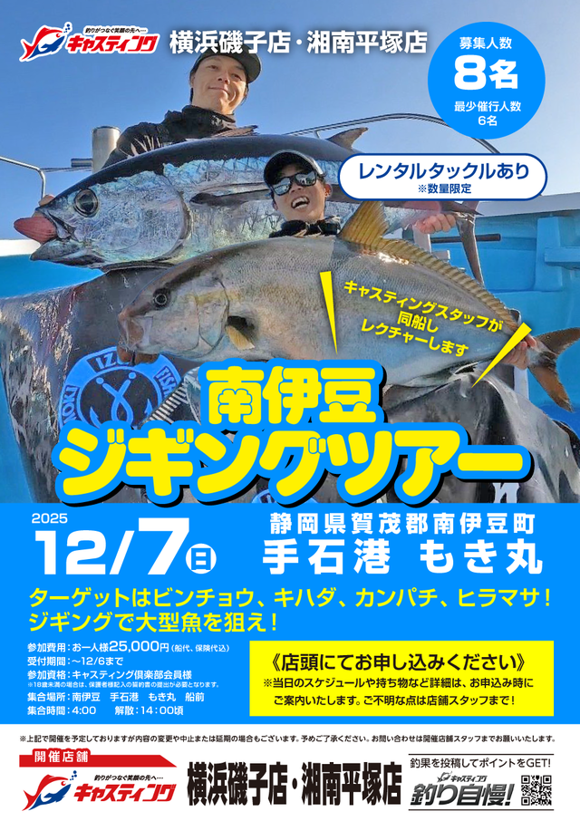 HOME > イベント予定 > 【横浜磯子店・湘南平塚店】南伊豆ジギングツアー