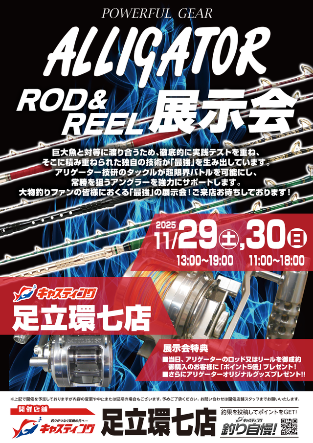 【足立環七店】アリゲーター ロッド&リール展示会