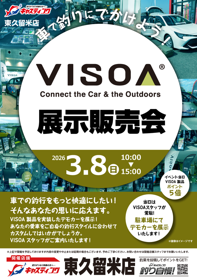 VISOA製品を実装したデモカーを展示!あなたの愛車をご自身の釣行スタイルに合わせてカスタムしてはいかがでしょうか。VISOAスタッフがご案内いたします!