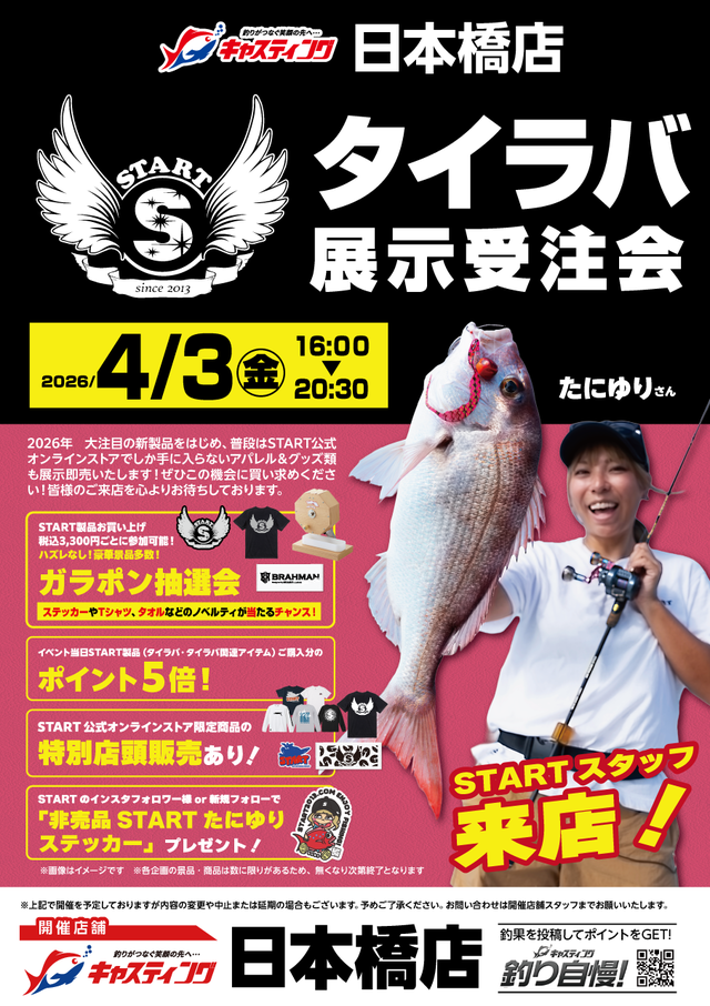 HOME > イベント予定 > 【日本橋店】START(スタート)タイラバ展示受注会