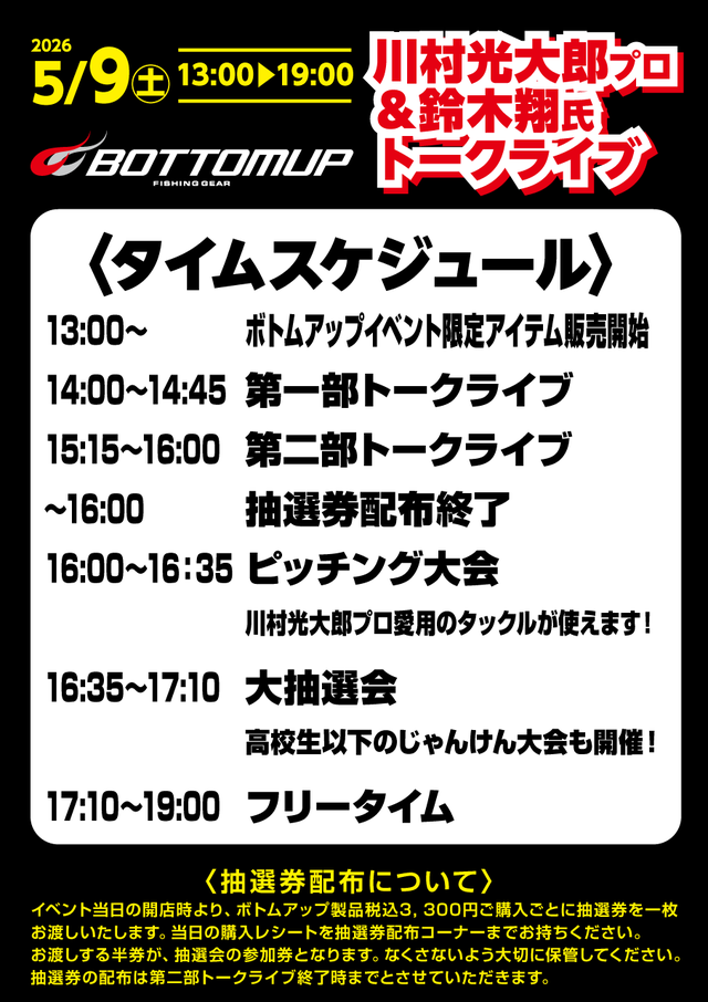 ボトムアップ川村光大郎プロ&鈴木翔氏トークライブ開催決定!!当日にしか聞けない話が盛りだくさん!!
