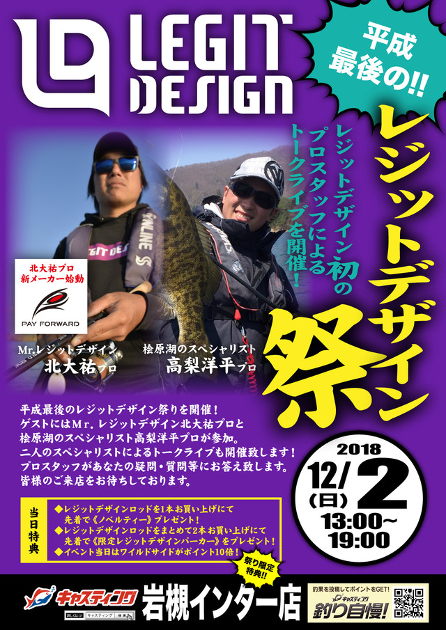 平成最後のレジットデザイン祭りを開催!ゲストにはMr.レジットデザイン北大祐プロと桧原湖のスペシャリスト高梨洋平プロが参加。二人のスペシャリストによるトークライブも開催致します!プロスタッフがあなたの疑問・質問等にお答え致します。皆様のご来店をお待ちしております。