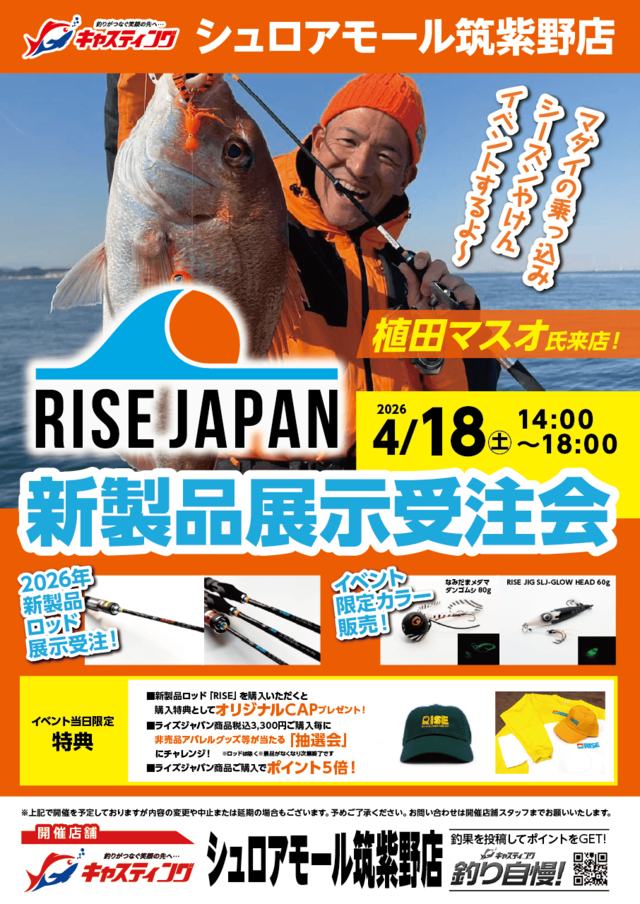 HOME > イベント予定 > 【シュロアモール筑紫野店】RISE JAPAN(ライズジャパン)新製品展示受注会