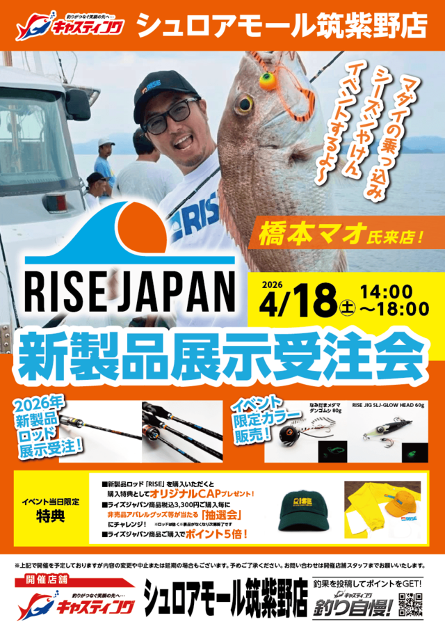 ■新製品ロッド「RISE」を購入いただくと購入特典としてオリジナルCAPプレゼント!