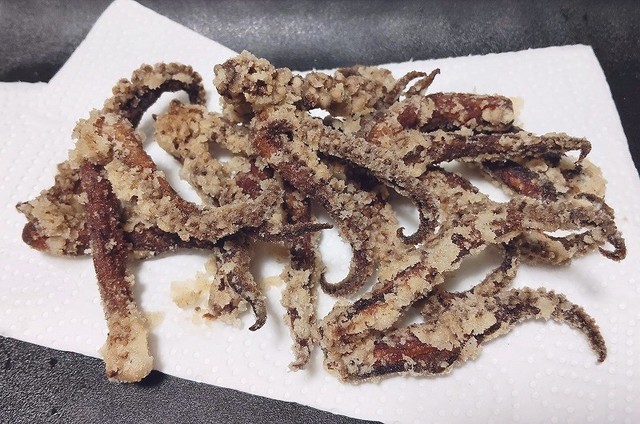 ゲソは、醤油に生姜とにんにくで濃い目の味付け。